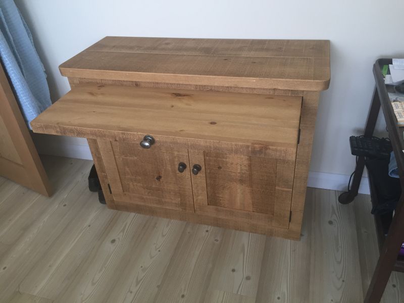 Our Hidden Home Office is an ideal desk if you are limited for space or you just like to be tidy. It has a pull out drawer to create a desk or slide it away andyou are left with a cupboard. Inside you will find a shelf with adjustable positions.